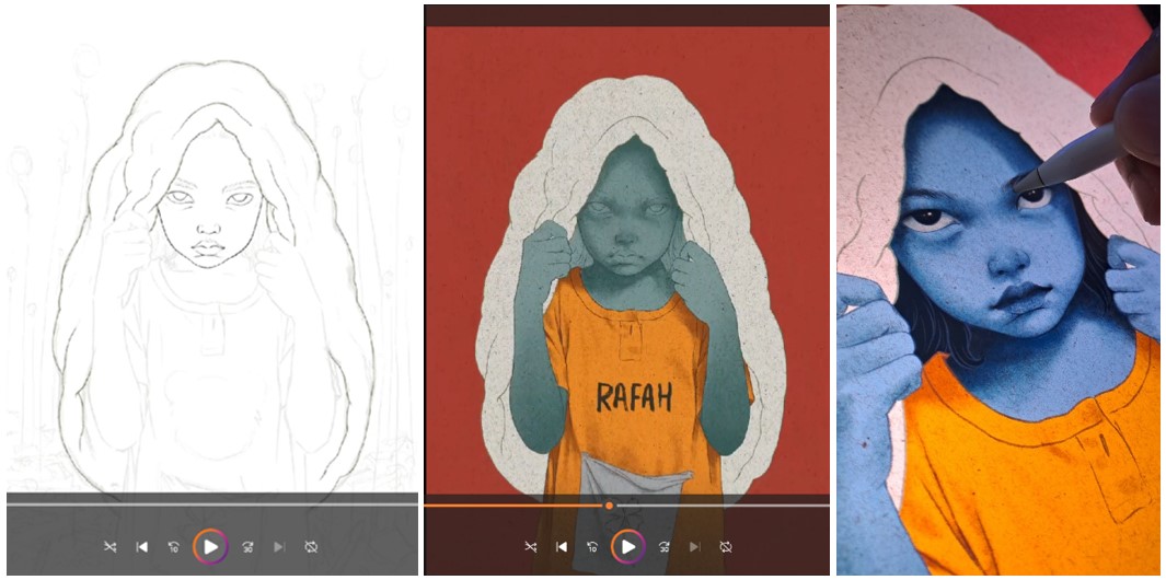 Gambar tersebut dari akun @garisedelweiss, seorang seniman muda asal kota Pasuruan. Bukan tentang banyaknya yang menyukai unggahan gambar tersebut. Memang secara visualisasi kurang menggambarkan ketragisan yang terjadi pada Rafah. Tidak ada darah, tidak ada runtuhan gedung, tidak ada api dan sebagainya yang menyeramkan. Namun gambar tersebut memiliki representasi psikologi dari tragedi Rafah.