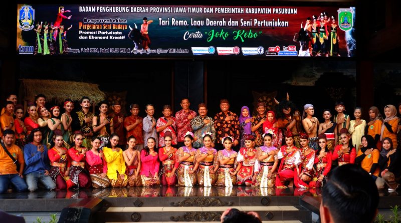 Surup.co,- Dinas Kebudayaan dan Pariwisata Kabupaten Pasuruan kembali menggelar pementasan teater tradisi di Taman Mini Indonesia Indah pada 7 juli 2024, yang pada tahun ini bekerja sama dengan SMP Negeri 1 Gondang Wetan. Pementasan ini bertujuan menarik wisatawan yang berada di TMII untuk lebih mengenal budaya, khususnya Budaya Jawa Timur, juga sebagai ajang promosi kebudayaan dan cerita-cerita rakyat yang berada di Pasuruan, Jawa timur.